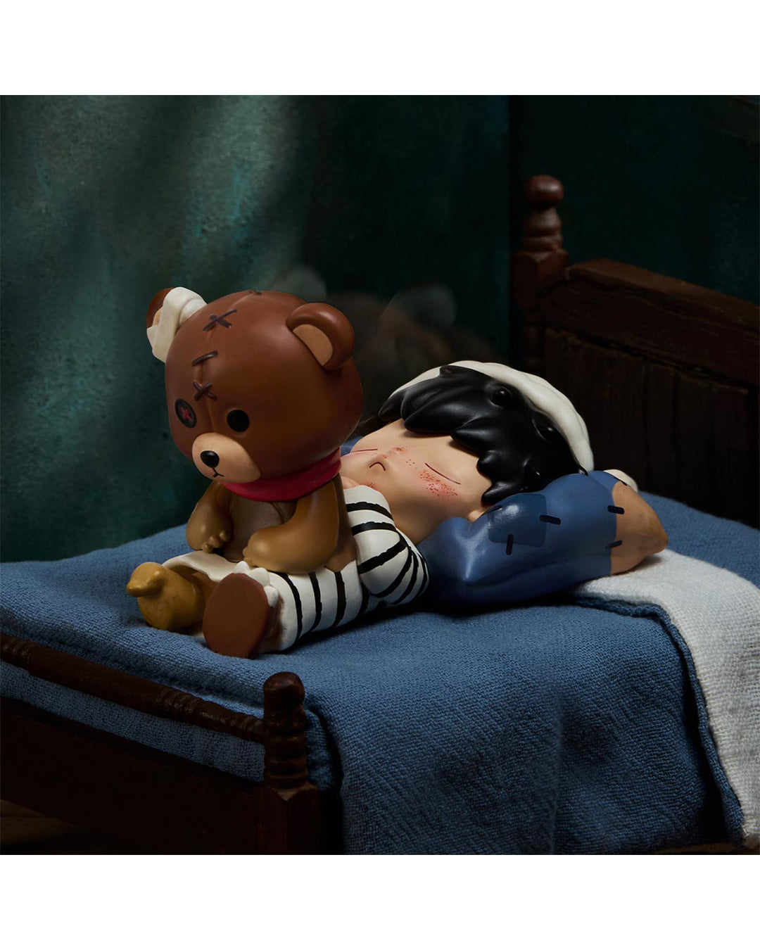Cada figura presenta una versión distinta de Hirono conviviendo con “monstruos” simbólicos que representan miedos, recuerdos, soledad o fantasías infantiles distorsionadas. Los diseños combinan colores apagados, detalles expresivos y un estilo que mezcla ternura con un toque inquietante.